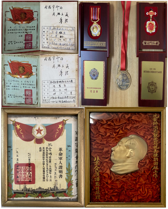 92岁高龄的沈老虽然头发花白但依然精神矍铄,思路清晰。他耐心地给我们讲述抗美援朝时期的事迹,1950年11月沈老投身到了抗美援朝的战争中去,负责弹药补给工作,需要在夜间将弹药运送到前线,沈老讲到自己在弹药补给过程中,当时差点被飞机掉下来的炸弹砸中,可见当时的情况有多危险。讲到这里,沈老目光坚定地说道“中国人有保家卫国的精神,我们不怕死,我们赢在了这个地方!”。他还曾将自己三年的工资毅然决然的捐献给东北军区军械部用于建造飞机大炮。沈老在中国人民志愿军抗美援朝出国作战过程中,荣获两次三等功,一次通报表扬。他的英勇事迹彰显出了中华民族精忠报国、无畏无惧的优秀品质,这些优良的精神品质依然鼓舞着后人要牢记使命,不忘初心、奋发有为!