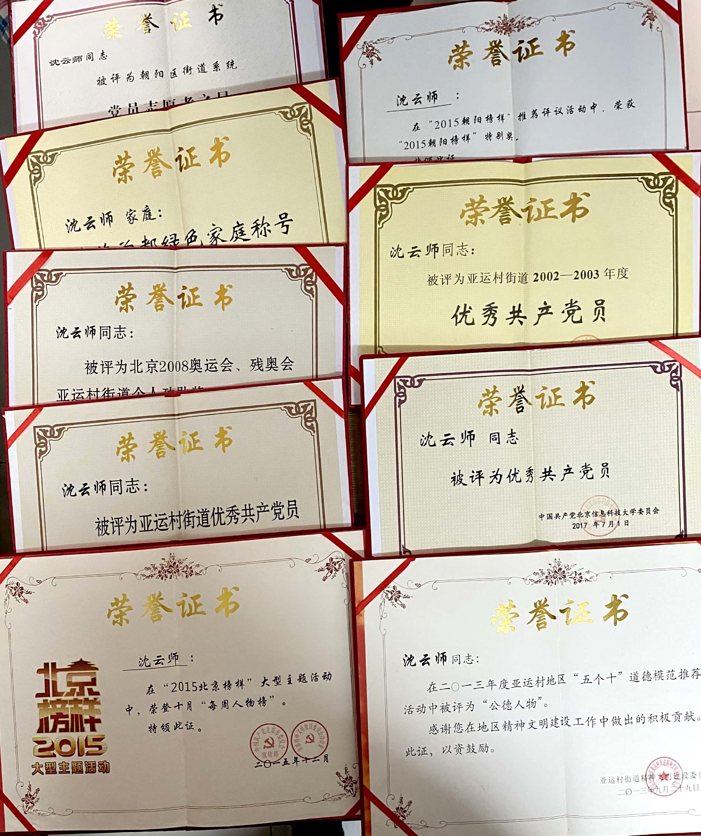 访谈中,他还向我们展示了“抗美援朝出国作战70周年纪念章”、“中华人民共和国成立70周年纪念章”和“北京市劳模”、“北京五好职工”、“优秀党员”、“公德人物”等荣誉证书。