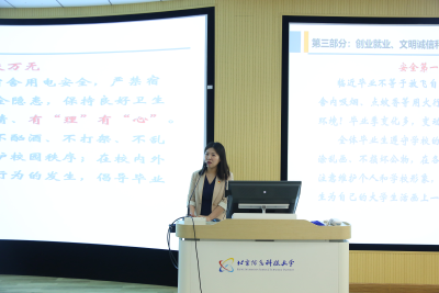 5月23日,理学院于沙河校区WLA505教室组织召开2024年四六级考前动员暨诚信教育大会,学院党委副书记王海璐、团委书记阿雨萌和专业指导教师王毅参加本次大会,进一步加强学风建设,严肃考风考纪,在全院范围内开展诚信应考教育,理学院并于文理楼B座前悬挂诚信应考条幅,在信息科大校园内营造理学院“明理善学”的学习氛围。