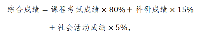 第十条 评定过程中考试课程成绩占主导地位,综合考虑科研和社会活动等方面,评级标准采用积分制,其中研究生二年级综合成绩计算方法为: