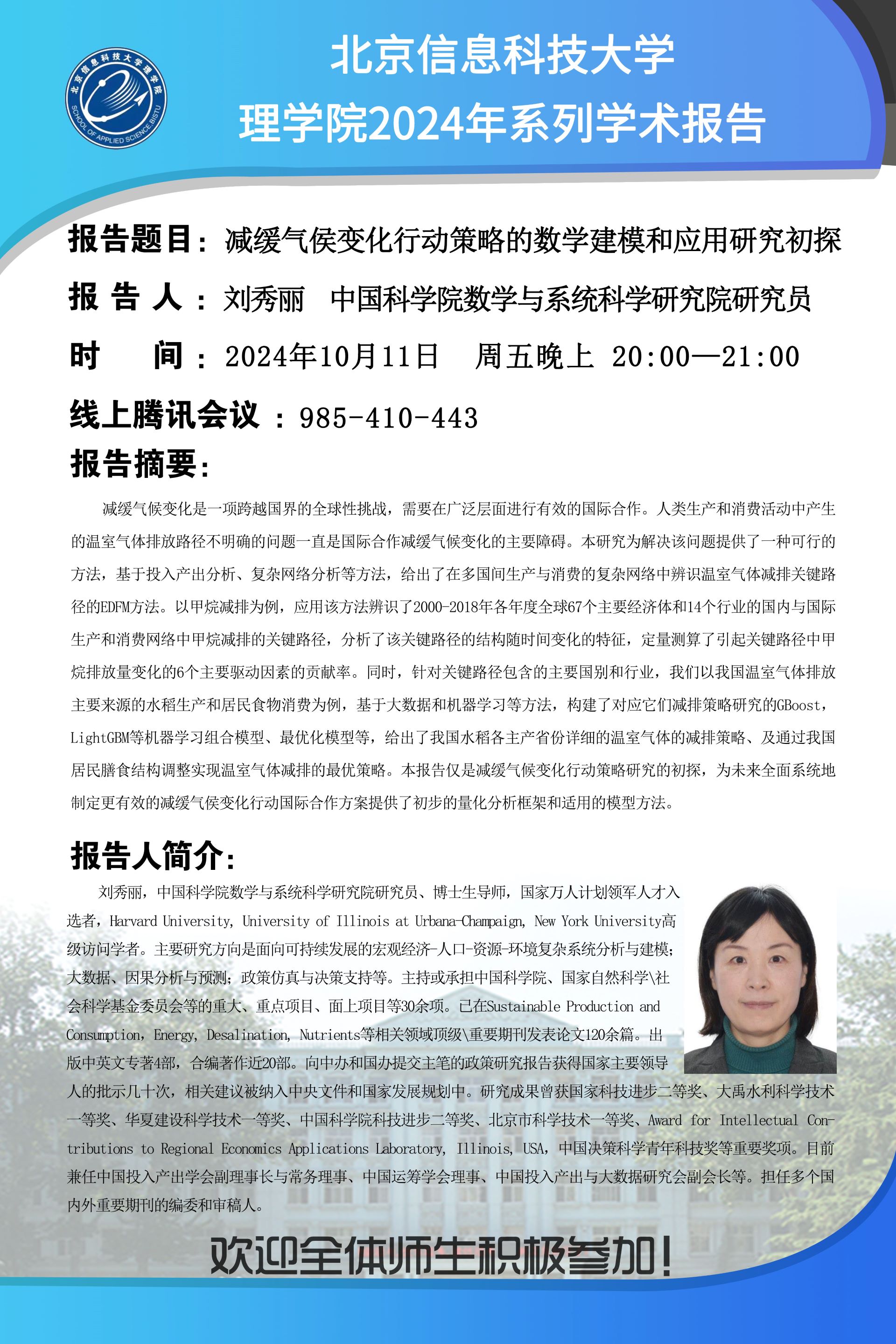- 2024-10-18 减缓气侯变化行动策略的数学建模和应用研究初探(刘秀丽 研究员 中国科学院数学与系统科学研究院)