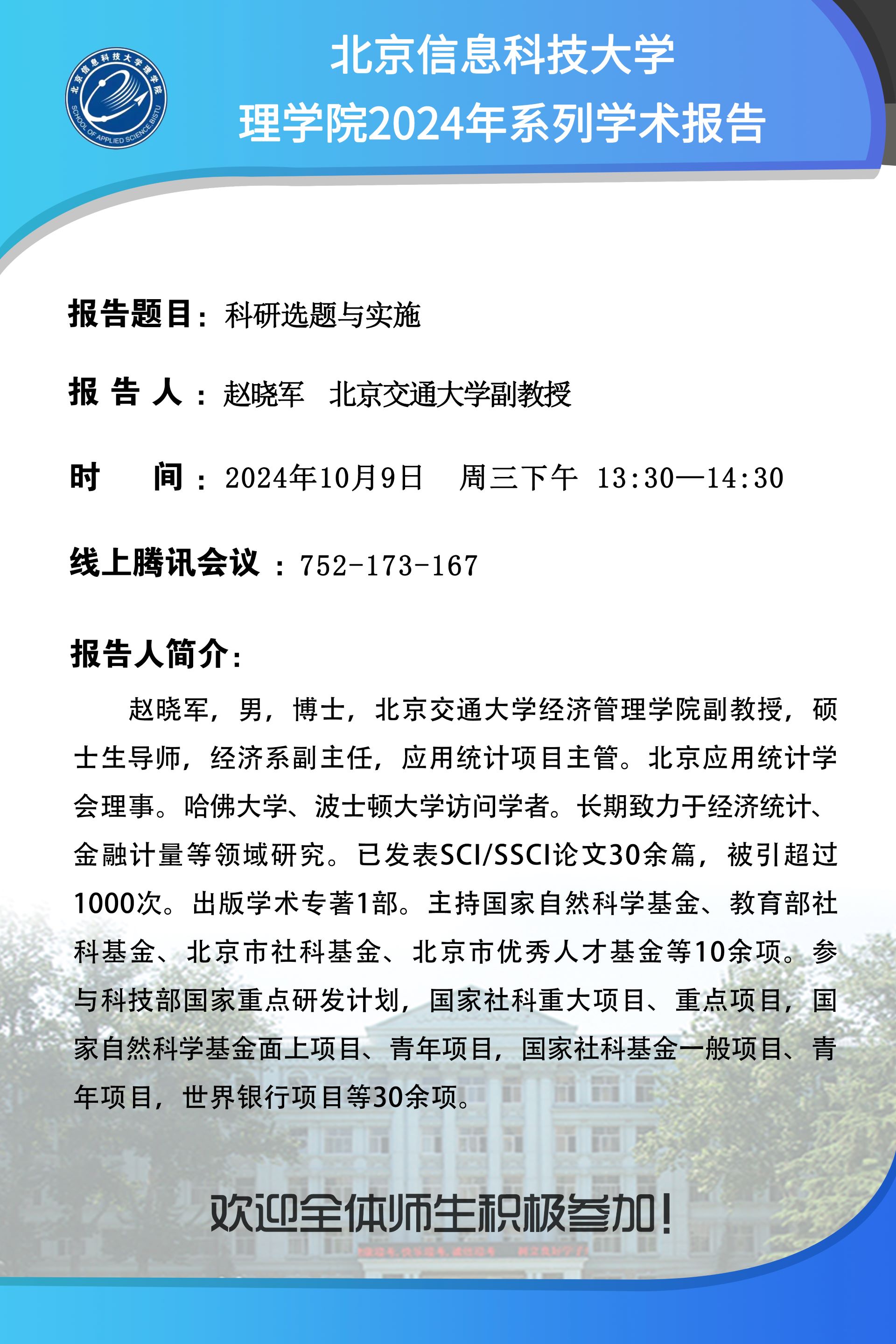 - 2024-10-18 科研选题与实施(赵晓军 副教授 北京交通大学)