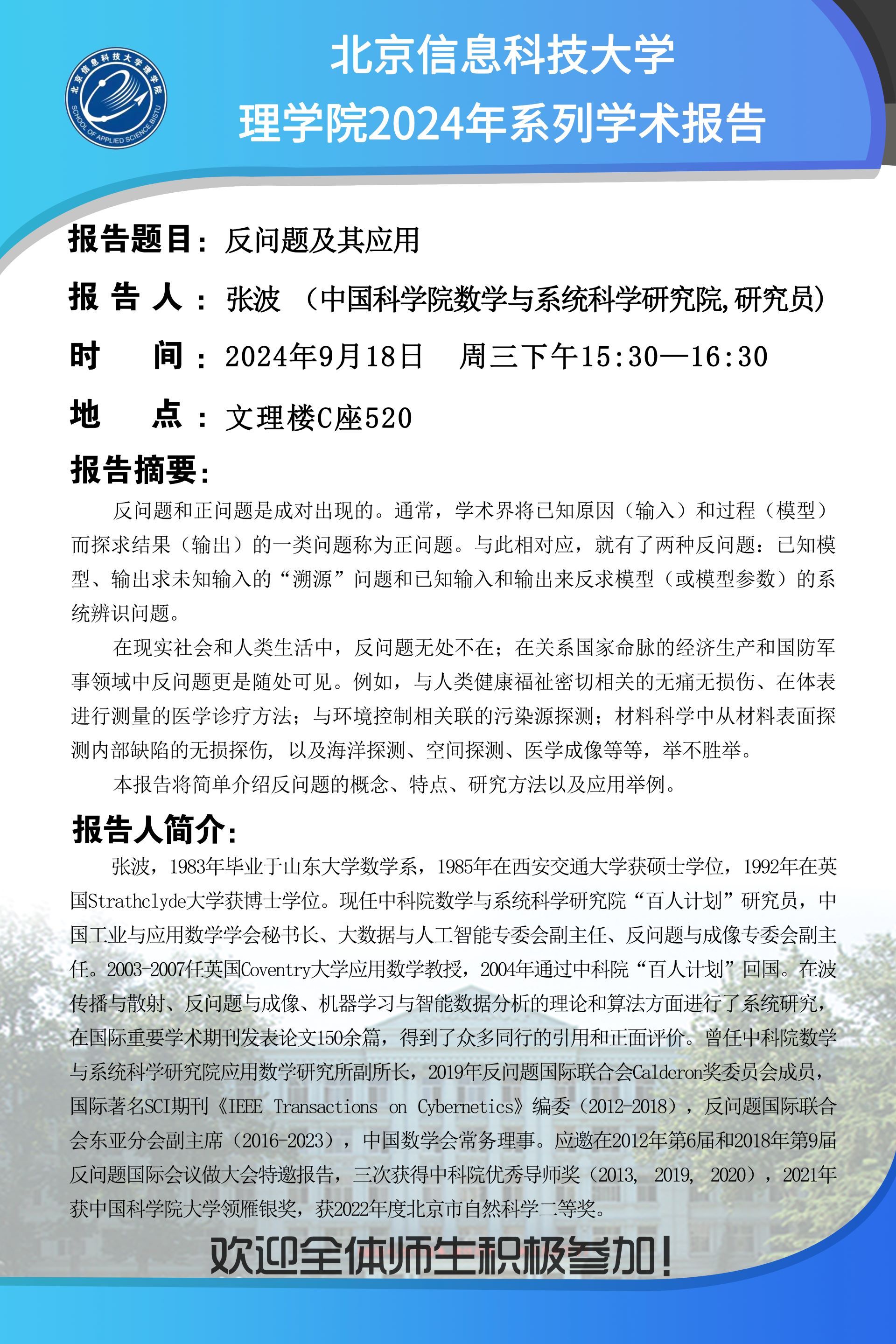 - 2024-10-18 反问题及其应用(张波 研究员 中国科学院数学与系统科学研究院)