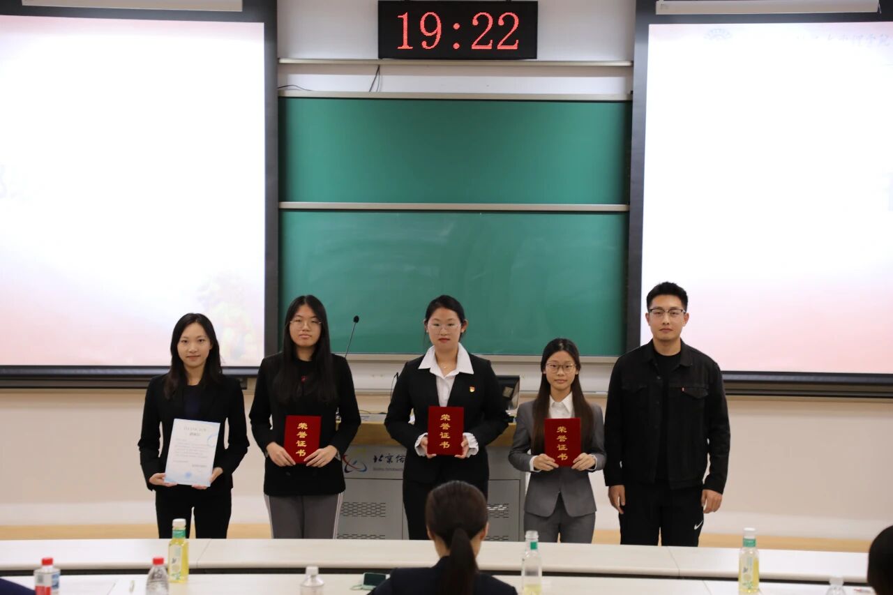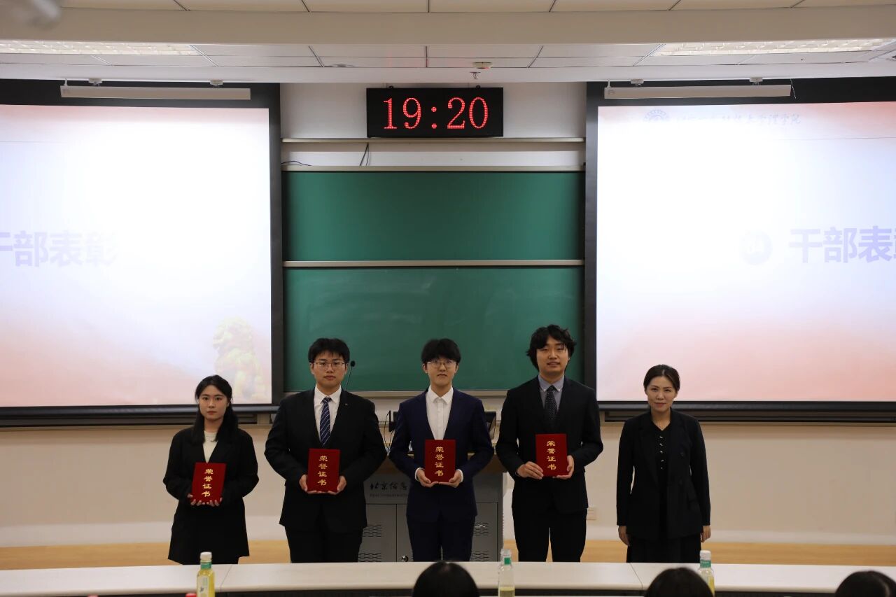 表彰环节是对过往付出的致敬。在激昂的背景音乐中,王海璐、刘莹、王也三位老师分别为学生会、团委、新闻中心、学生事务服务中心的上一届干部颁发荣誉证书与感谢信,感谢他们一年来为学院学生工作的辛勤付出。